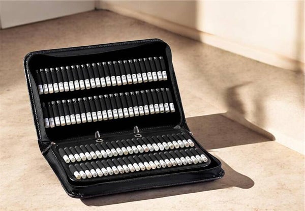 Een prachtige map met 160 parfum samples van 1,2ml eau de parfum, aangevuld met informatieve brochures en diverse samples van andere Glantier producten.